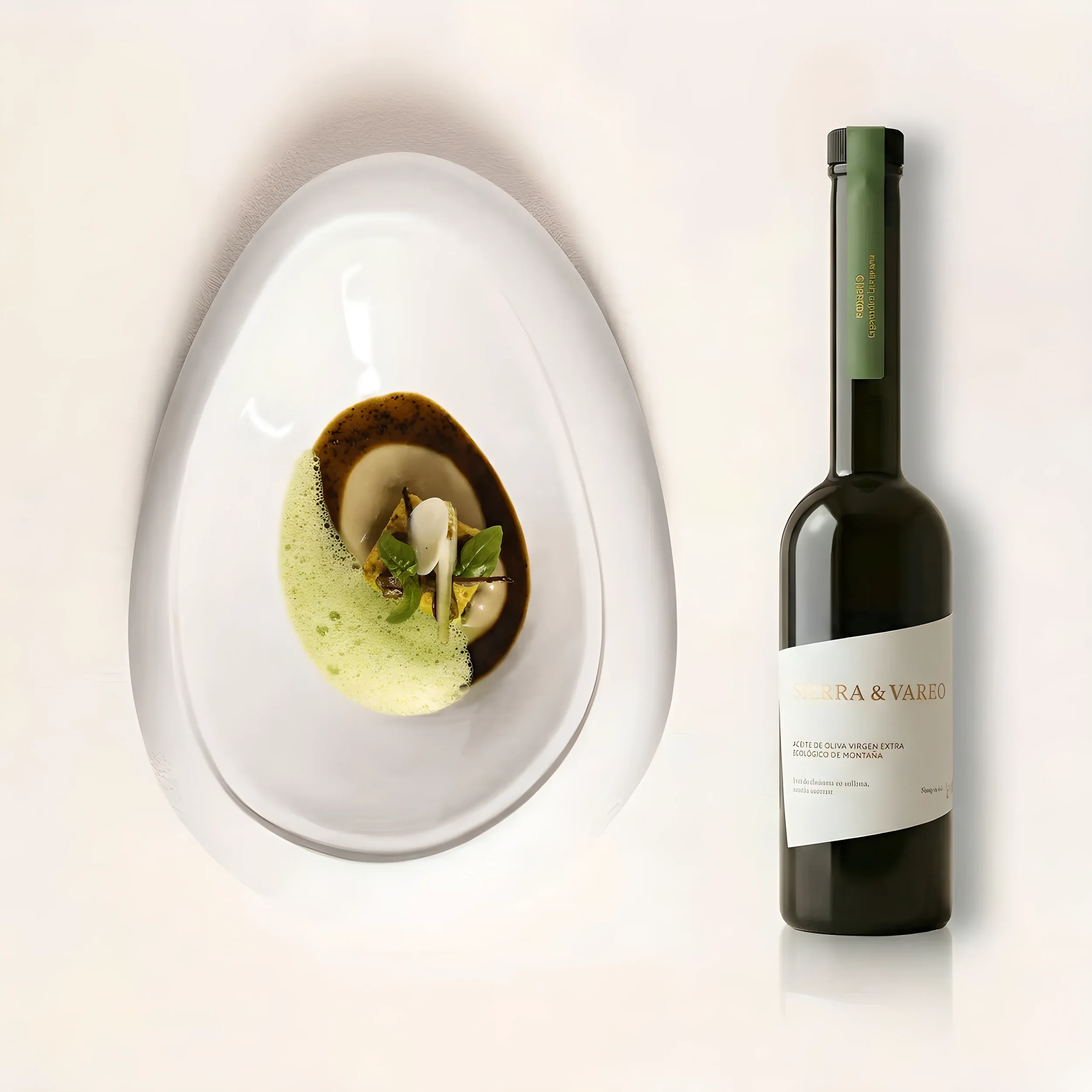 Los Aceites Sierra & Vareo se presentan en un plato distintivo pensado para la contemplación y la degustación.