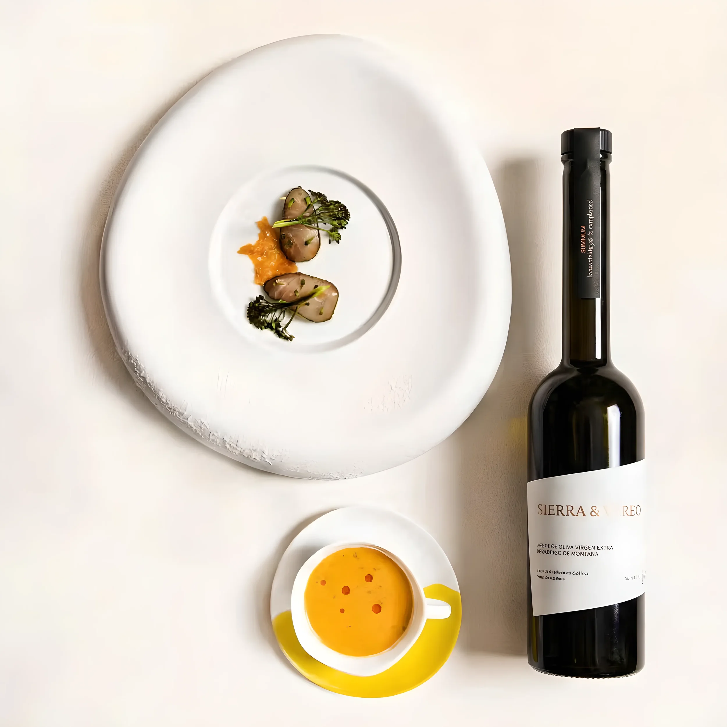 Su faceta dulce y cálida se manifiesta a la perfección cuando se marida con mariscos como cigalas y vieiras. Esta armonía persiste con platos de ternera, que ponen de manifiesto su naturaleza frutal y envolvente. Las hierbas aromáticas como el romero y la albahaca realzan aún más los sabores, al tiempo que los toques de acidez del limón descubren por completo la amplitud y la elegante estructura de este aceite. Esta añada ilustra la capacidad de Sierra & Vareo para crear aceites que plasman y magnifican la esencia de los ingredientes con los que se sirven.